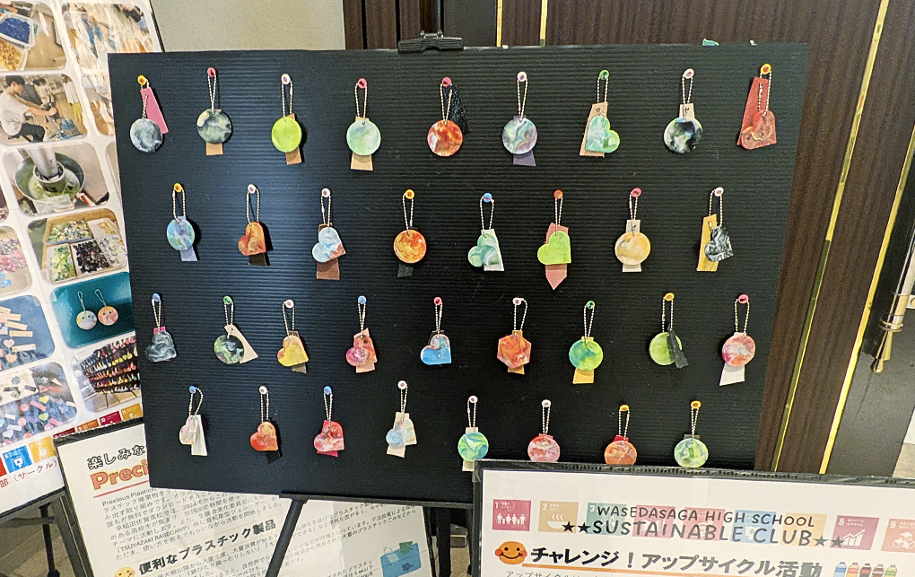 会場内には、高校生がペットボトルキャップをアップサイクルして作ったキーホルダーなど、研究の成果が展示され、これまでの努力の過程が窺えました。